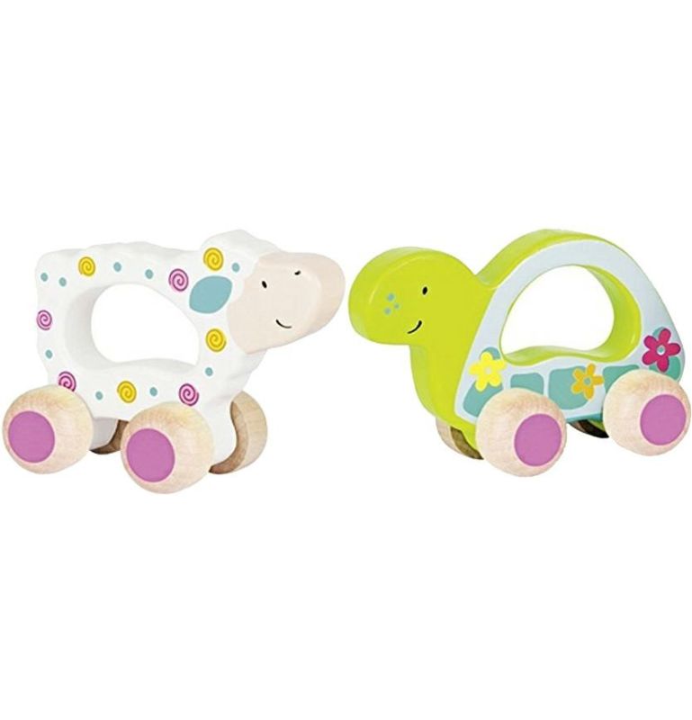 Świetne samochodziki dla roczników! Do wyboru żółwik lub owieczka. Każdy samochód posiada uchwyt dopasowany do rączki dziecka, dzięki czemu maluch ćwiczy chwytanie.