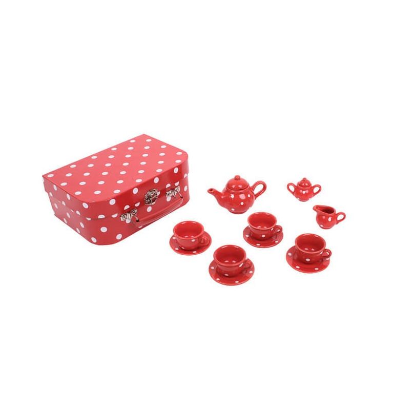 Idealny zestaw szczególnie dla dzieci, które są zafascynowane zabawą w kuchni oraz przygotowywaniem i podawaniem posiłków. Zestaw zawiera talerzyki, różnego rodzaju dzbanki wykonane z porcelany. Elementy te są zapakowane w czerwoną walizkę, dzięki czemu można je schować po zakończonej zabawie i wszędzie ze sobą zabrać. Jeden z najczęściej wybieranych zestawów dla przedszkolaków!