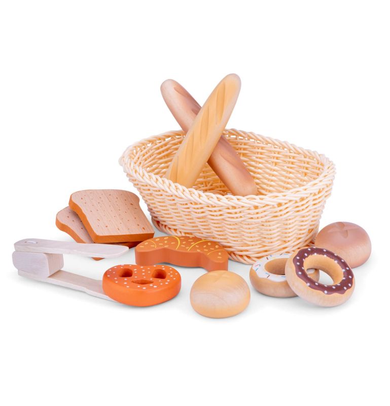 Zestaw drewnianego pieczywa do zabawy w koszyczku