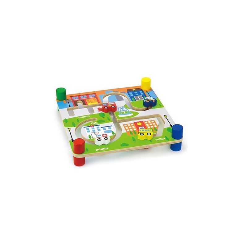 Genialna dwustronna tablica! Z jednej strony samochody, z drugiej zwierzęta. Zadaniem dziecka jest przewodzenie samochodów lub zwierząt po labiryncie. Nie ma lepszego prezentu dla dwulatków!