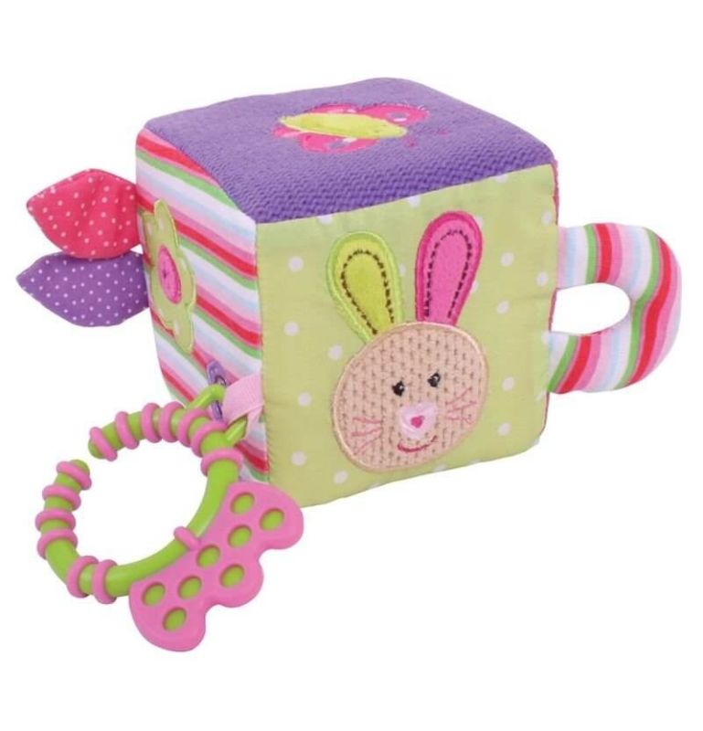 Ta miękka, pluszowa kostka zawiera wiele aktywności dla Twojego maluszka. Kiedy ją potrząśnie, usłyszy grzechotkę. Kostka posiada także gryzak, szeleszczące elementy oraz trzy naciągane wypustki. Zabawka jest kolorowa. Kostka na pewno sprawi maluchowi wiele frajdy!