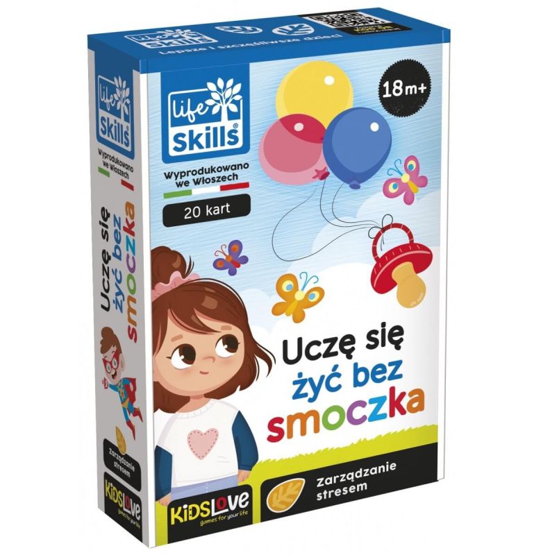 Za pomocą flashcards zgromadzonych w pudełku, które prezentują rady i różnego rodzaju czynności, rodzic nakłania dziecko do porzucenia smoczka.