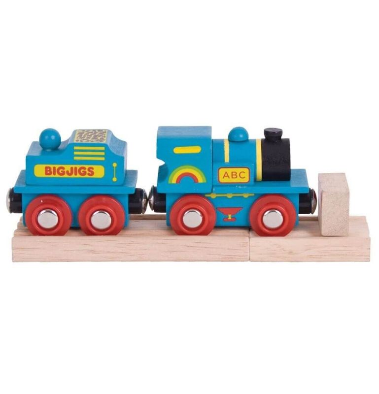 Niebieska lokomotywa do kolejek drewnianych BigJigs