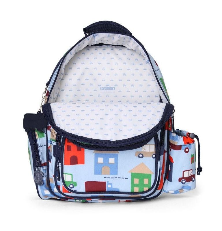 Plecak z kieszeniami, Autka, niebieski, Penny Scallan