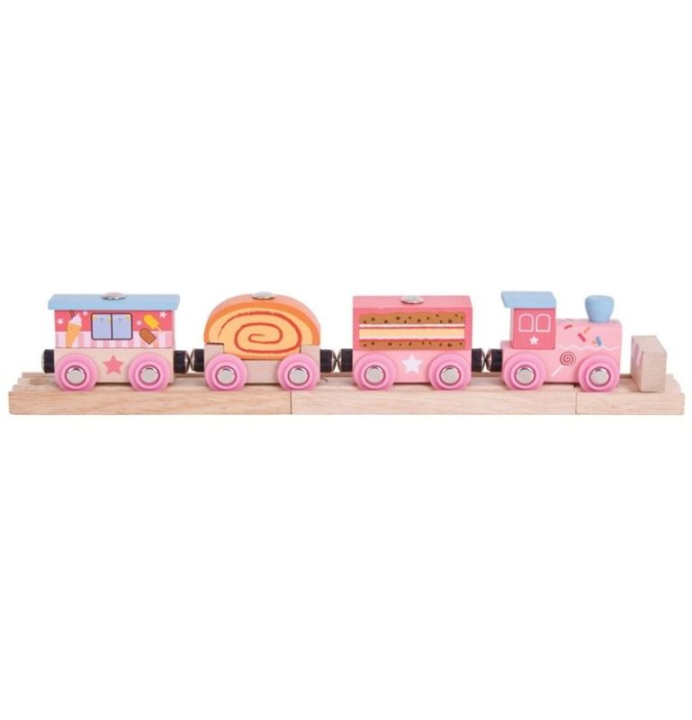Kilkuwagonowy drewniany pociąg, który spodoba się każdej dziewczynce! Każdy wagon posiada magnes, przez co można je ze sobą łączyć na różne sposoby, a dodatkowo magnes gwarantuje świetną przyczepność.