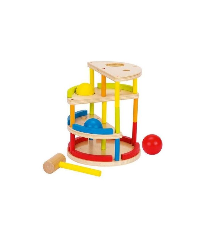 Zadaniem dziecka jest przebicie za pomocą młoteczka kulek na niższy poziom.