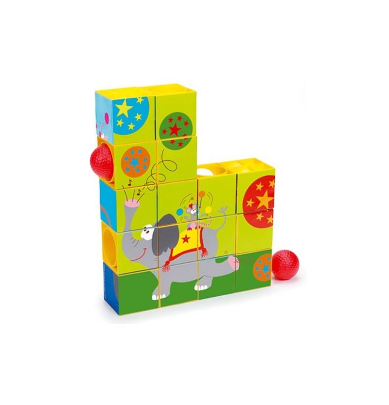 Zabawka rozwija wyobraźnię przestrzenną, koordynację i sprawność malutkich rączek.