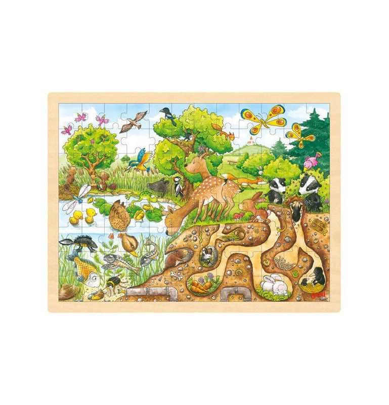 Genialne puzzle, które składają się z 96 elementów. Dziecko może poćwiczyć dopasowywanie kształtów, logiczne myślenie. Puzzle są ze zwierzątami, dziecko pozna świat przyrody. Zestaw może posłużyć również do nauki nazw kolorów, zwierząt. Puzzle polecane od trzeciego roku życia.