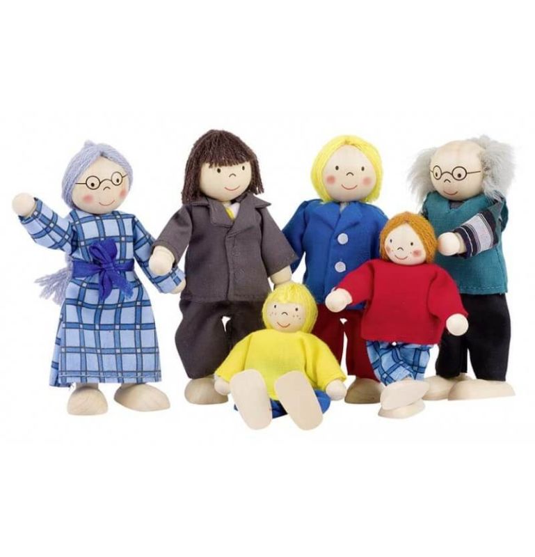 Świetny zestaw drewnianych laleczek. W skład zestawu wchodzą aż trzy pokolenia, co powoduje, że jest on chętnie wybierany zarówno przez maluchów jak i ich rodziców! Laleczki są elastyczne i można je ustawiać w dowolnych pozycjach. Zestaw znakomicie rozwija wyobraźnię i sprawia, że zabawa jest jeszcze bardziej ciekawa!