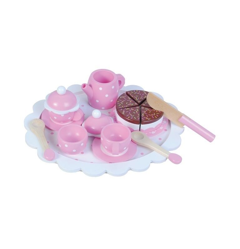 Dwa kubeczki, sztućce, ciastko, śmietanka, cukier, taca – czy potrzeba czegoś więcej by wydać pyszny podwieczorek? Zestaw został wykonany z drewna i jest świetnie ozdobiony – spodoba się każdemu maluchowi. Różowy zestaw herbaciany daje dziecku nowe pomysły na zabawę, a także dba o prawidłowy rozwój każdego malucha!