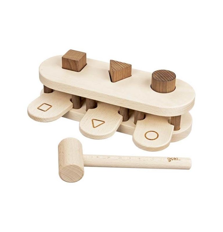 Zadaniem dziecka jest włożenie odpowiednich klocków w otworki.
