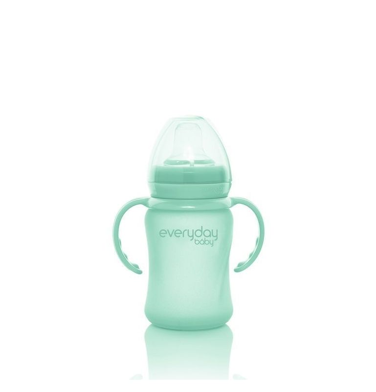 Szklana butelka z ustnikiem niekapkiem i rączkami, 150 ml, miętowa, Everyday Baby