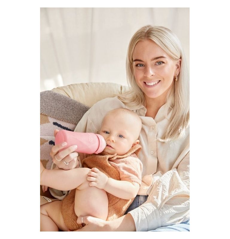 Szklana butelka ze smoczkiem M, 240 ml, różowa, Everyday Baby