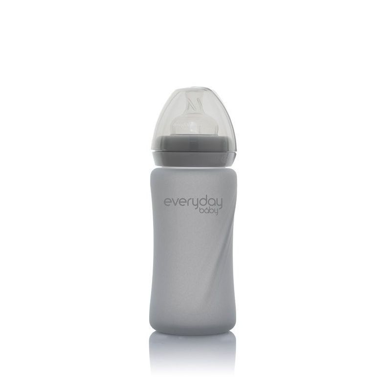 Szklana butelka ze smoczkiem M, 240 ml, szara, Everyday Baby
