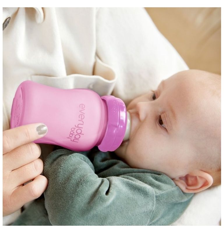 Szklana butelka ze smoczkiem S reagująca na temperaturę, 150 ml, wiśniowa, Everyday Baby