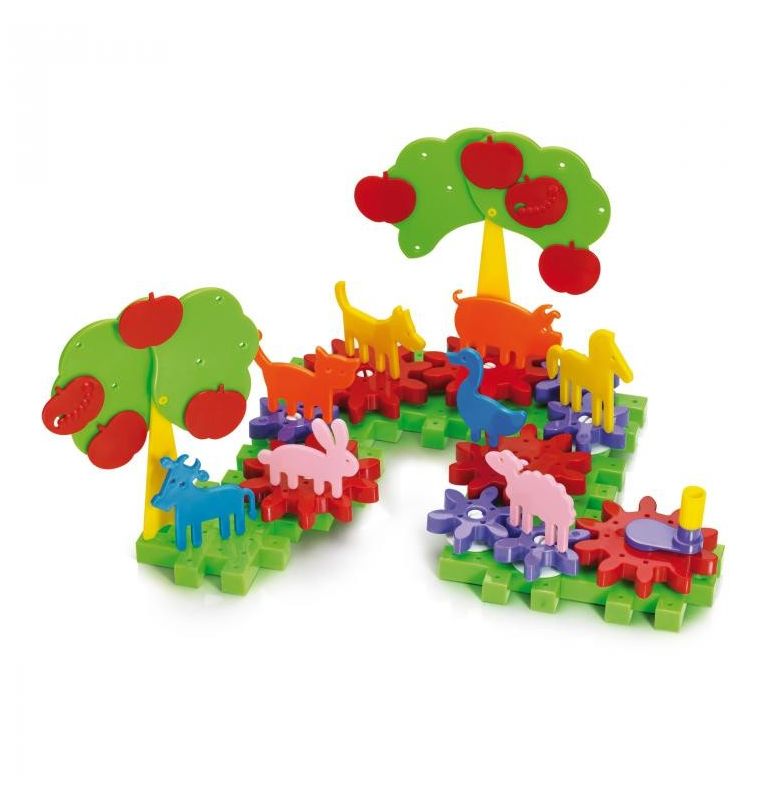 Kreatywny zestaw konstrukcyjny! Georello Farm pozwala nauczyć się przyczyny, skutku oraz prostych zasad mechaniki. Najpierw należy zbudować podstawę łącząc ze sobą płytki, a następnie przy pomocy łączników, dołączyć napędy tak, aby stworzyć reakcję łańcuchową. Konstrukcja będzie ruchoma, gdy pokręci się korbką.