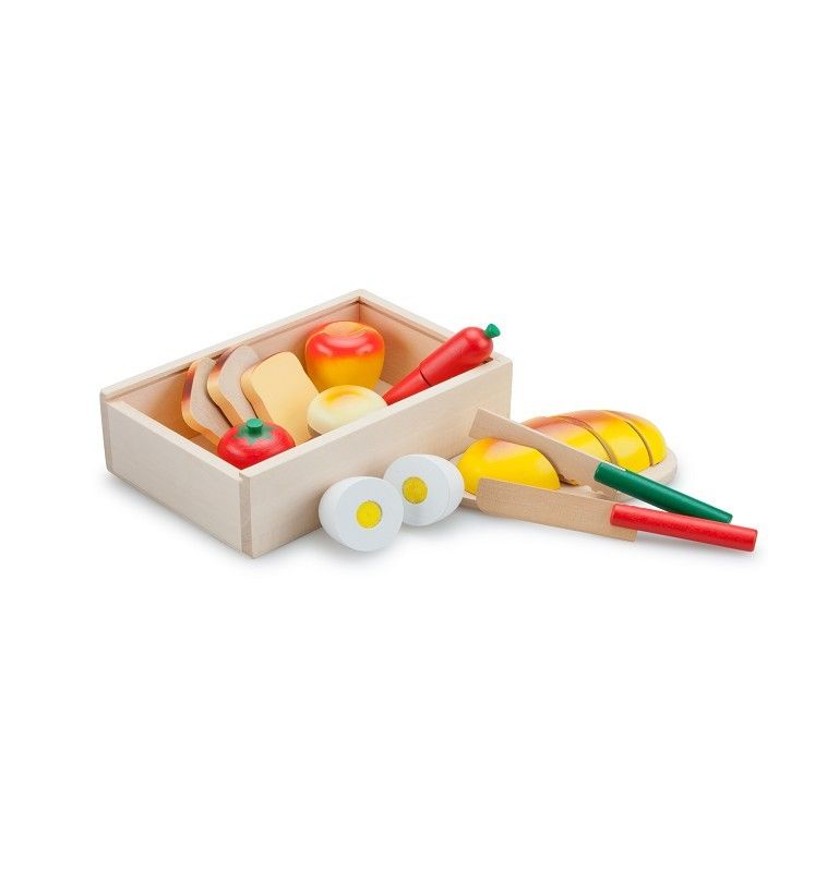 Wspaniałe, drewniane zestawy, które zawierają produkty do krojenia po rzepach. Dziecko może kroić wielokrotnie, co sprawia, że odkrywa w sobie pasję do gotowania jak również ćwiczy zdolności manualne. Artykuły, które znajdują się w zestawach stanowią zdrowe jedzenie (warzywa, owoce), co pokazuje dziecku jak powinno się odżywiać.