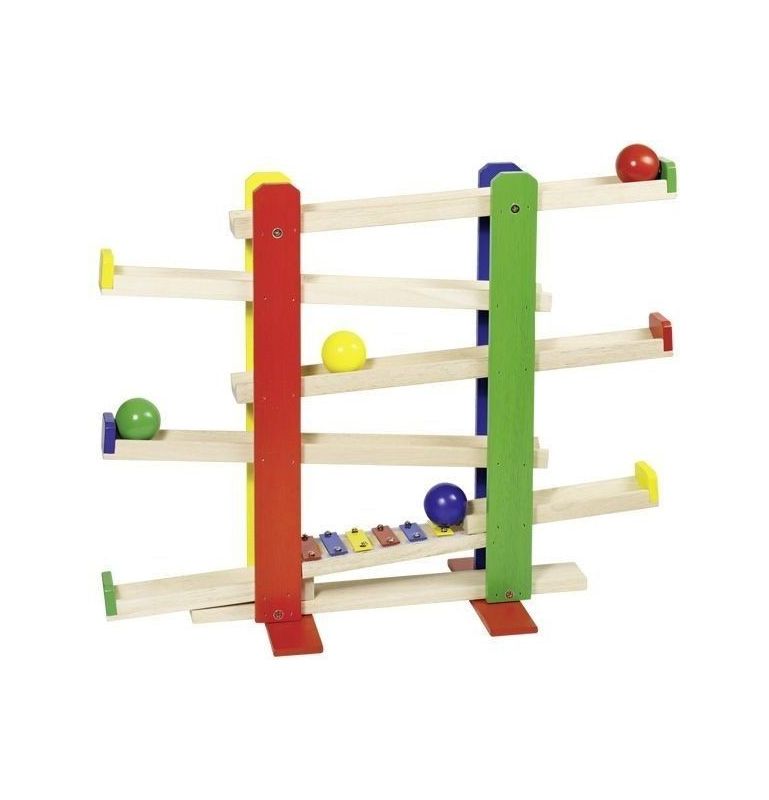Drewniany tor dla kulek z wbudowanymi cymbałkami .