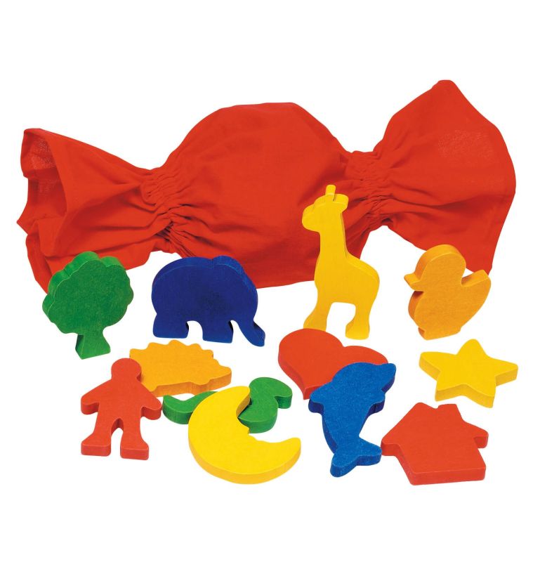 Zestaw zawiera worek, w którym znajduje się dwanaście różnych elementów. Wkładamy rękę do środka i naszym zadaniem jest odgadnięcie nazwy danego elementu. Wydaje się łatwe? Tylko pozornie.